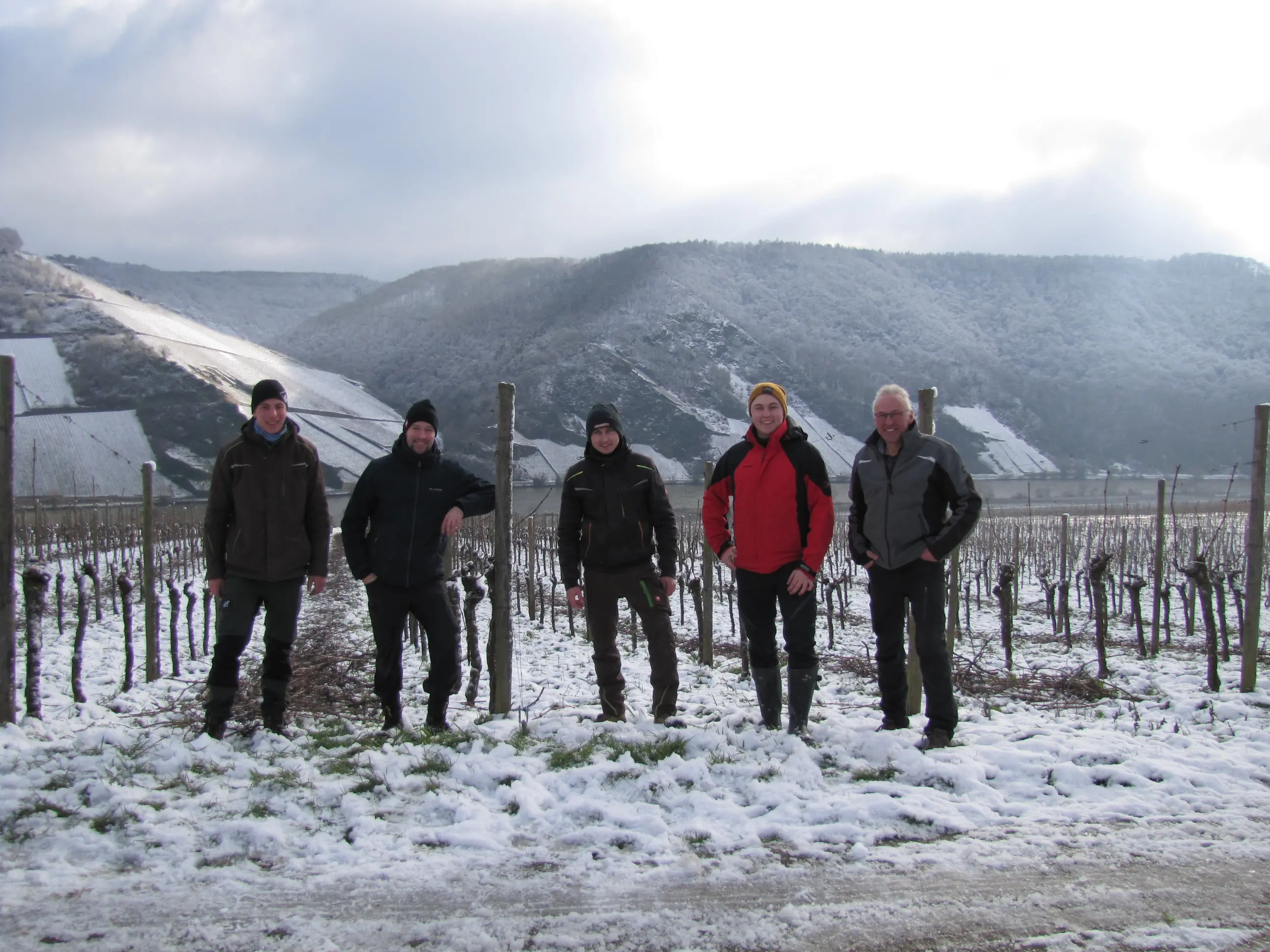 Dieses tolle Geschenk hat mich sehr gefreut und wir haben die Idee dann auch zeitnah in die Tat umgesetzt. Mit Christian zusammen waren wir sechs gestandene Winzer und rückten, trotz winterlicher Bedingungen, unserem ältesten Spätburgunder-Weinberg zu Leibe. Klar, dass die alle den Schnitt perfekt beherrschen. In Windeseile kamen wir voran und hatten 1.600 Reben auf die neue Saison vorbereitet.