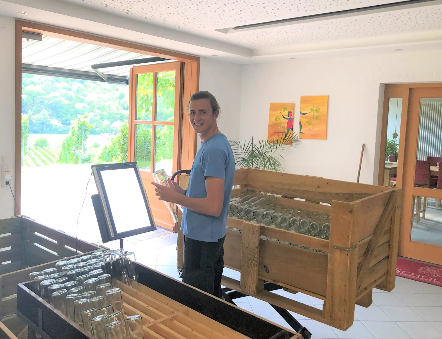 Voraussetzung für ein Studium an der Hochschule in Geisenheim ist ein Vorpraktikum. Ein halbes Jahr lang lernen die angehenden Studenten die Praxis kennen und können sich in die Materie einarbeiten. Simon Gorges aus dem Nachbarort Wintrich hat sich dazu unser Weingut ausgesucht. Er stammt auch aus einer Winzerfamilie und findet es spannend, die Weinwelt aus der Sicht eines ökologisch arbeitenden Weingutes kennenzulernen. Durch permanentes Hinterfragen von Produktionsprozessen und der ständigen Suche nach zusätzlichen Potentialen ist auch in Zukunft eine weitere Qualitätssteigerung möglich. Im November möchte er den Studiengang „Internationale Weinwirtschaft“ belegen. Hier werden neben den weinfachlichen Aspekten verstärkt auch marktwirtschaftliche Anforderungen im weltweiten Weinmarkt gelehrt. Wir wünschen unserem sympathischen und aufmerksamen Praktikanten jetzt schon viel Erfolg!